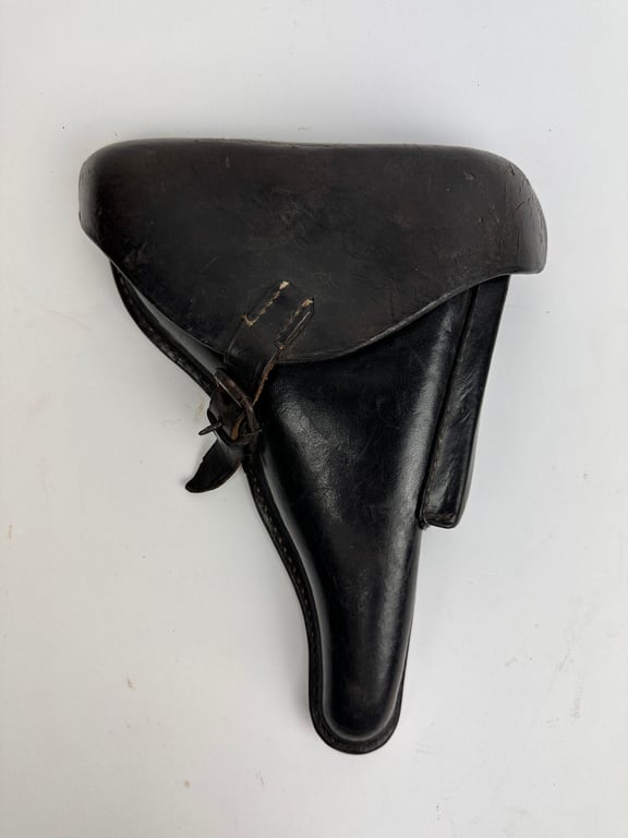 Nice used black p08 holster Maker CEA (Heinrich Thiele AG Dresden) 1942 inner strap is missing