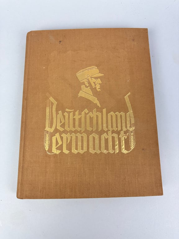 Cigarette card album Deutschland Erwacht in nice and complete condition. Edition 1933 Bahrenfeld. With fold-out image in the back