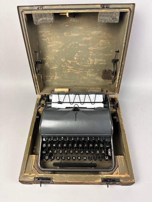 Waffen-SS typewriter by Olympia with ss button and orginal wooden box